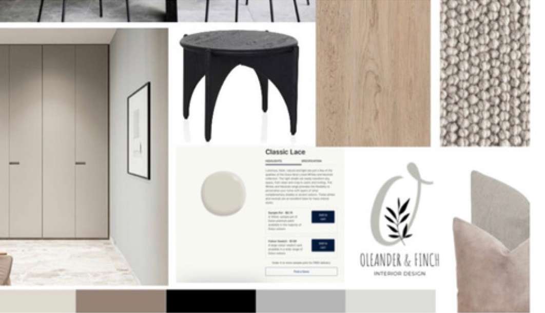 – 90 min 1:1 design focused zoom call – A custom flatlay of finishes and selections